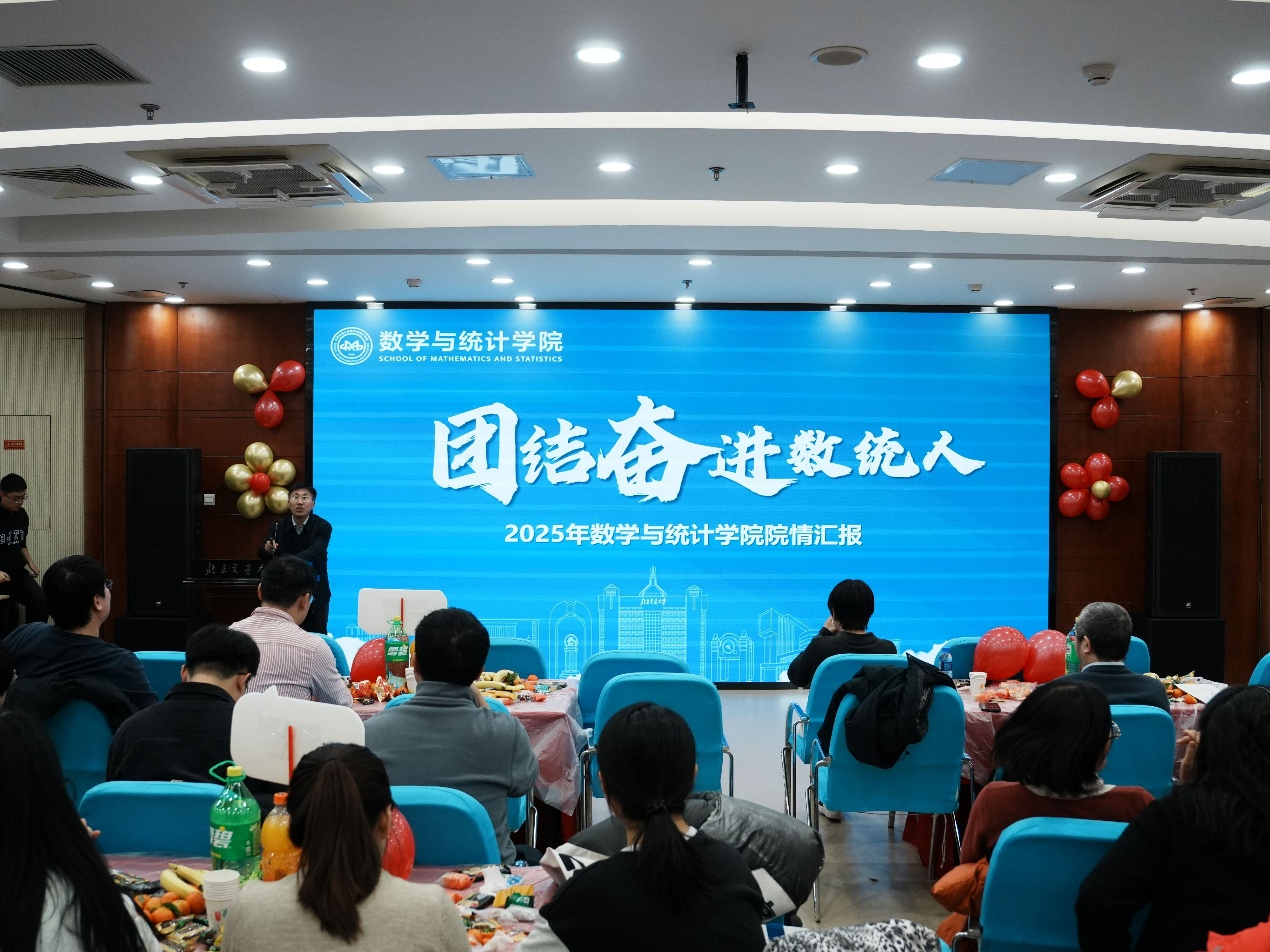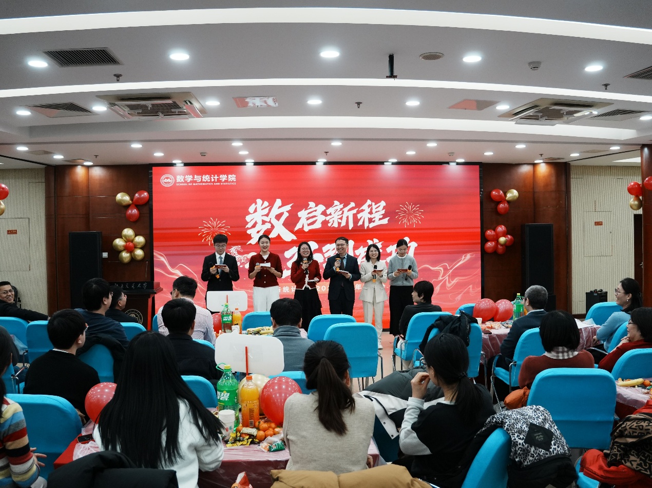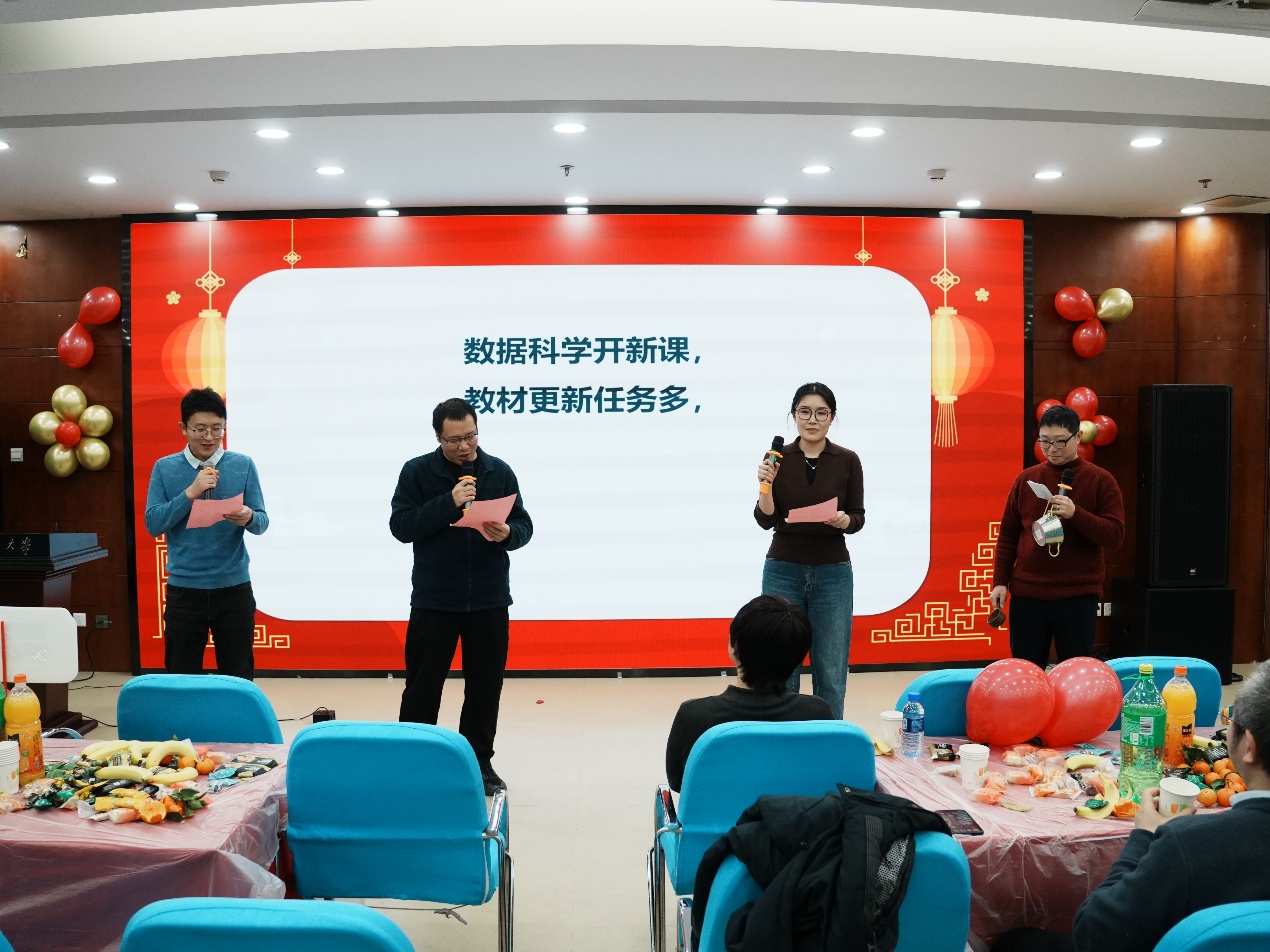 会上,于永光院长发表新年致辞,回顾了过去一年学院在教学科研、人才培养、学科建设等方面取得的丰硕成果,向辛勤耕耘奋发进取的教职工致以诚挚的新年祝福,并鼓励全体教师在新的一年里继续秉持严谨求实、笃行致远的精神,以数统人的智慧与担当,谱写学院发展的崭新篇章。随后,联欢会在充满活力的合唱《敬业者阵线联盟》中拉开帷幕,以激情点燃现场气氛。