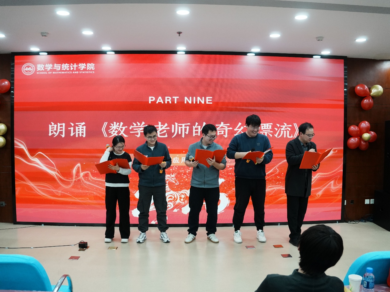 联欢会在罗俊杰老师的独唱《岁月里的花》优美旋律中圆满闭幕。歌声传递着对未来的憧憬,掌声凝聚着奋进的力量。此次新年联欢会不仅为广大教师提供了展示才华、交流互动的舞台,彰显了122cc太阳成集团团结向上、凝聚进取的良好氛围,更预示着在新的一年里,全体数统人定能继往开来,脚踏实地勇毅前行,为学院的高质量发展和学校的建设贡献更多智慧和力量。