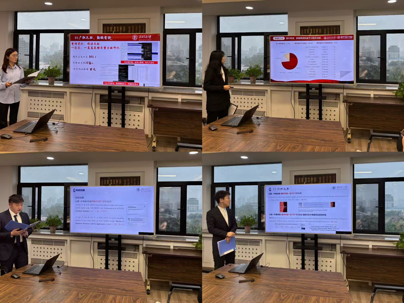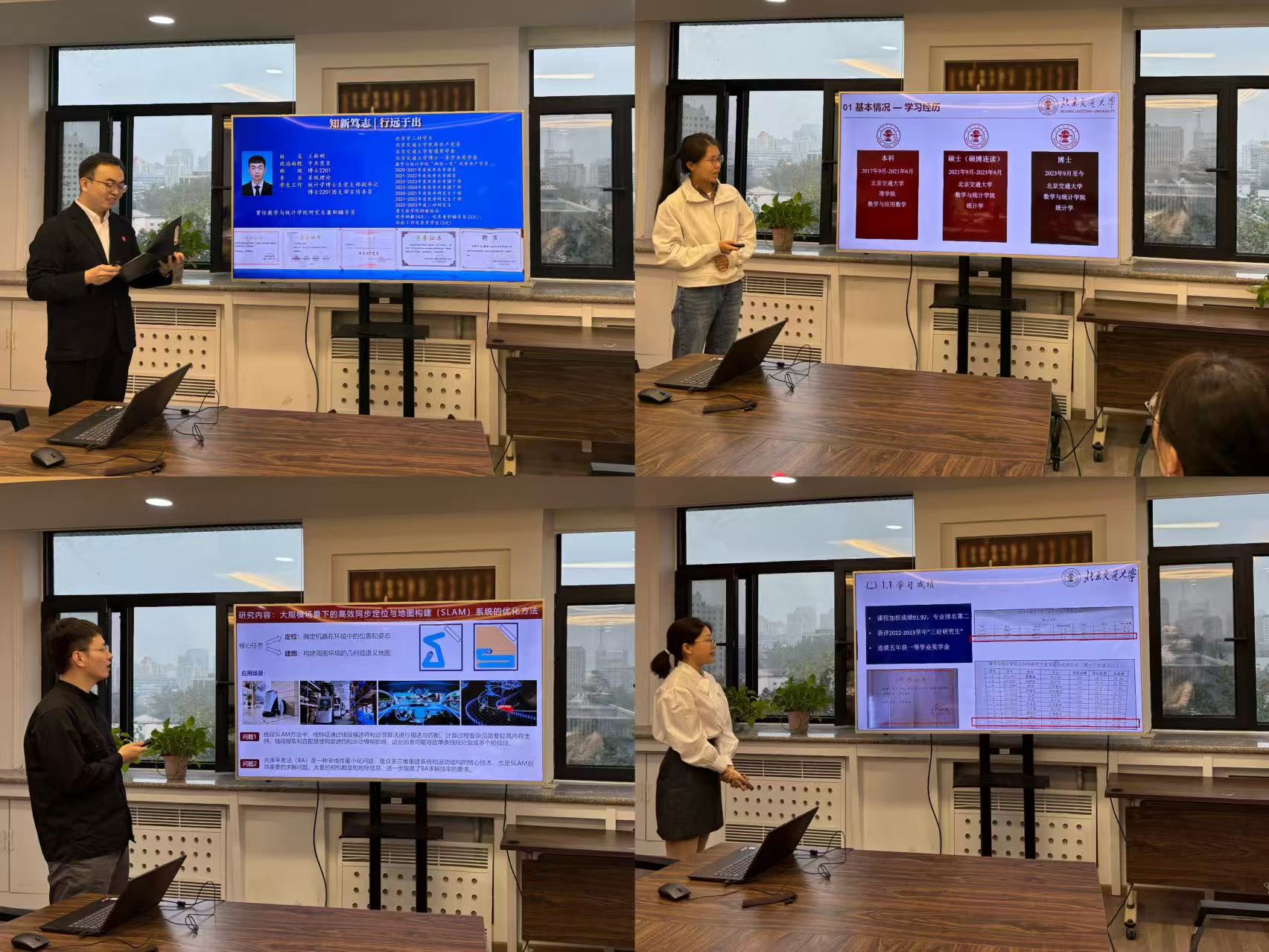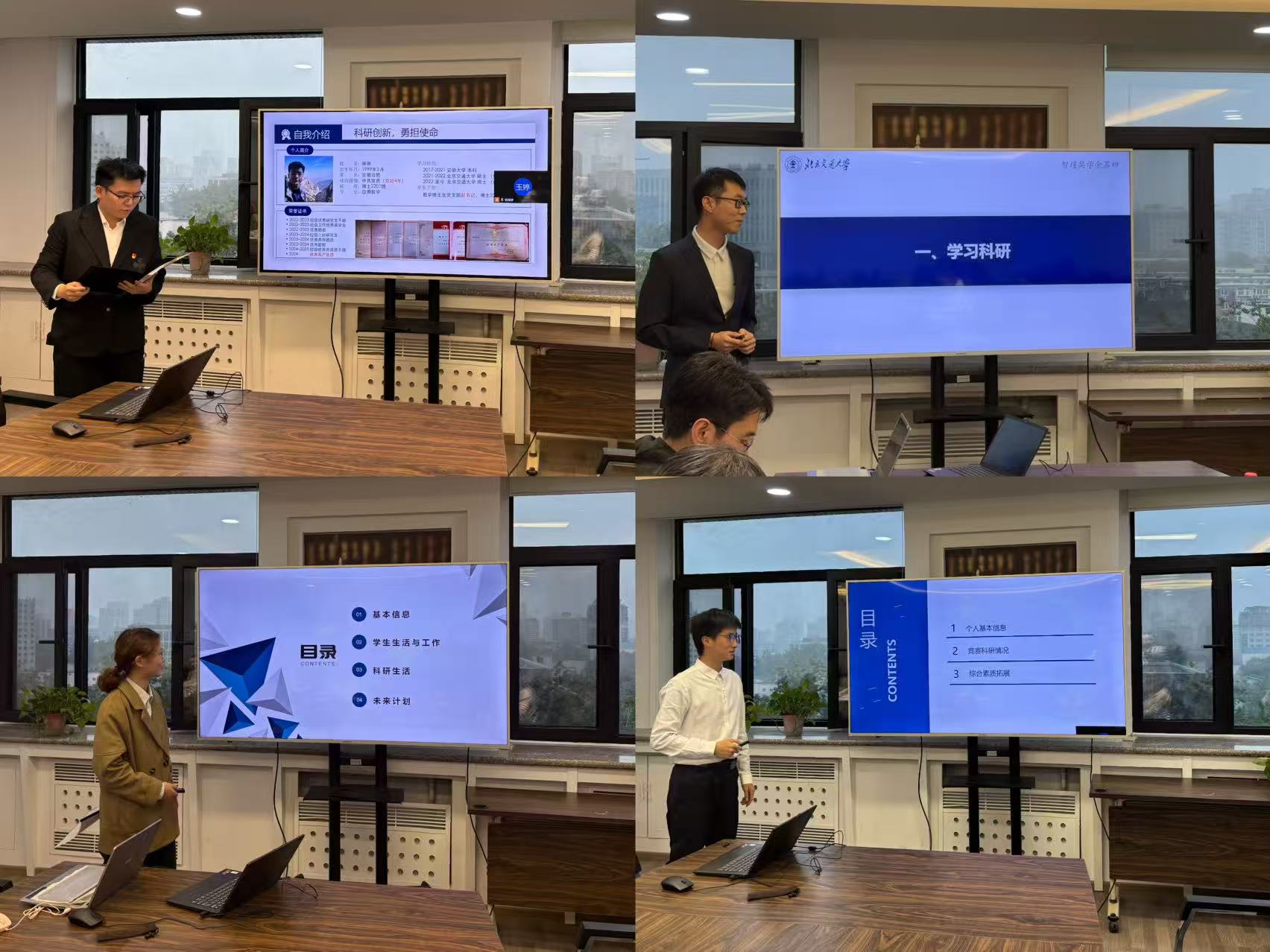 首先,经前期个人申报、资格审核,共有8名博士生、7名硕士生进入此次国家奖学金答辩环节。15名候选人依次上台,围绕思想表现、学业成绩、科研竞赛、社会实践、学生工作、综合发展等方面进行个人陈述,充分展现出我院研究生扎实的专业基础与积极向上的学术风貌。